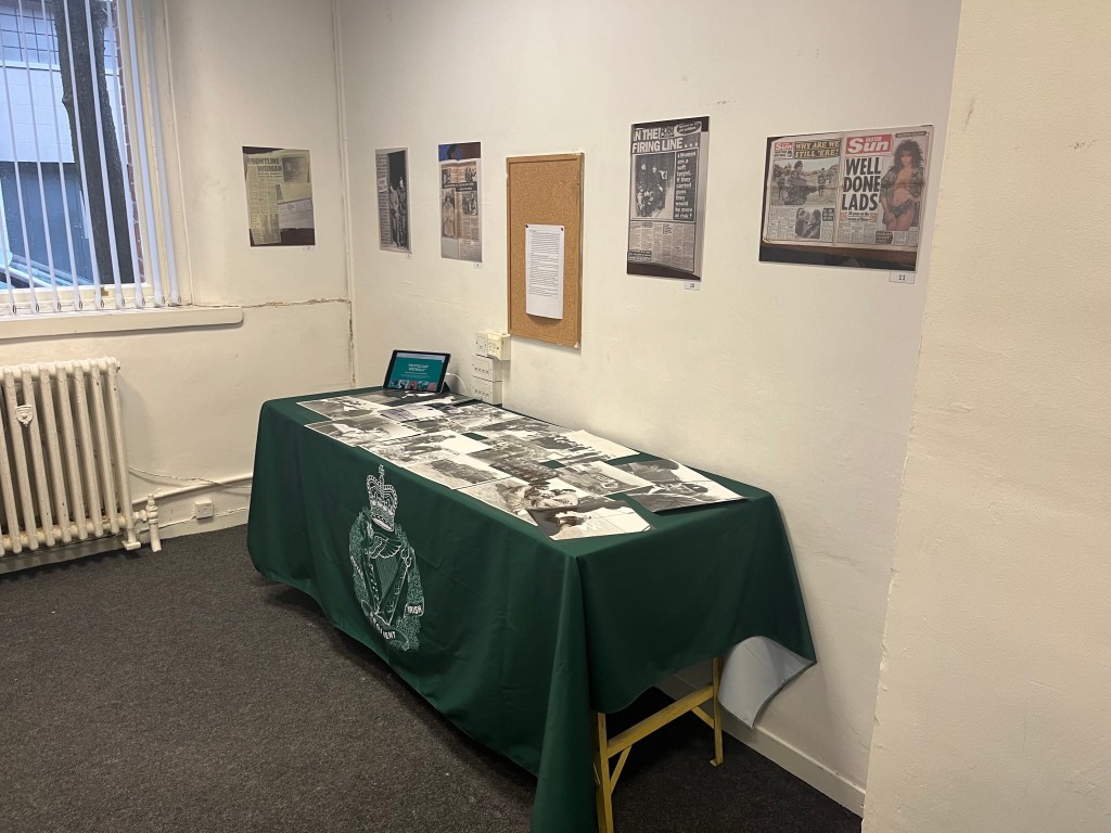September 2023 saw Cardiff University researchers get together for a research showcase at the Royal Ulster Rifles Museum in Belfast, funded by the Economic and Social Research Council Rapid Response Fund. We were delighted with the turn out and had fun trying to find additional chairs to squeeze everyone in! Alongside launching the virtual exhibition and screening two documentary films (see below for more information), visitors could explore a physical exhibition sharing photographs, media coverage and uniforms to spark continued conversation and reflection amongst attendees (where they could also access the virtual exhibition on Ipads).
